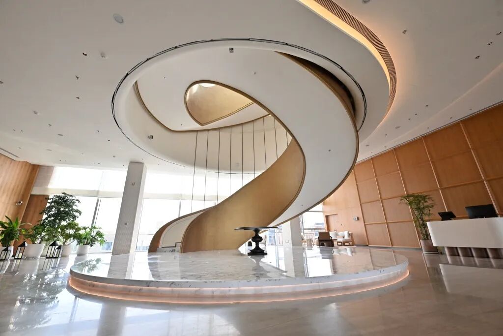 廖陈斌指向远处的一号光之境穹顶。“您看这块穹顶结构像不像盛开的花朵?它的结构呈现螺旋上升状态,大部分杆件尺寸都不一样。”廖陈斌解释,这处建设难度颇大,要先算受力情况,再提前给结构“使反劲”,还需三维激光扫描协助,特殊造型将为顾客营造更具艺术感官的购物体验。眼下,一号穹顶自底部开始已装设十余处显示屏,未来将构成一条屏幕“光带”盘旋上升至顶部,以超炫的视听表现,为购物者带来意想不到的震撼表现。