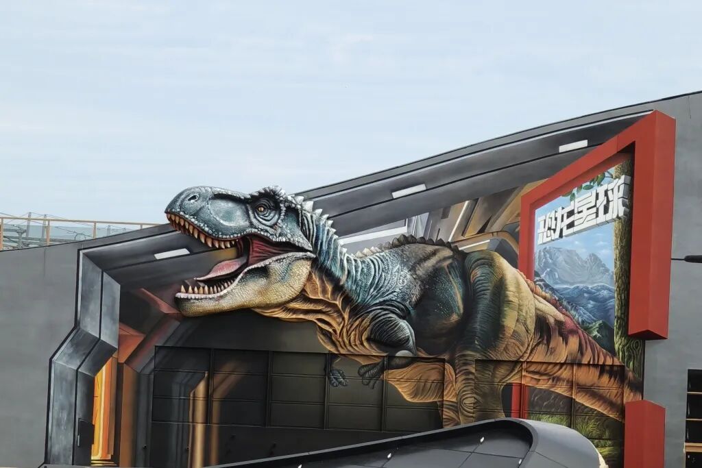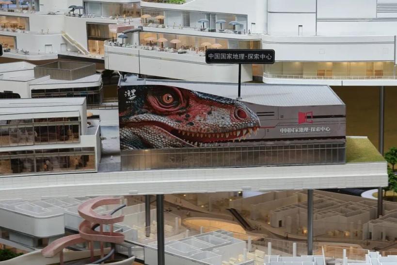 来到汀云小镇,总面积18万平方米的72栋建筑移步换景,别具特色。刚从一条通道走出,位于小镇东侧一条青色黄色相见的3D巨型恐龙就“探出头来”。旁边的中国国家地理探索中心已虚位以待,这里融合了中国国家地理的丰富资源和专业知识,开业后将围绕中国恐龙的主题打造星球冒险体验,模拟、还原中生代生态环境,让游客身临其境穿越远古时代,开启一场冒险之旅。一旁的剧场大屏幕已落成,为这里的文化体验更添色彩。