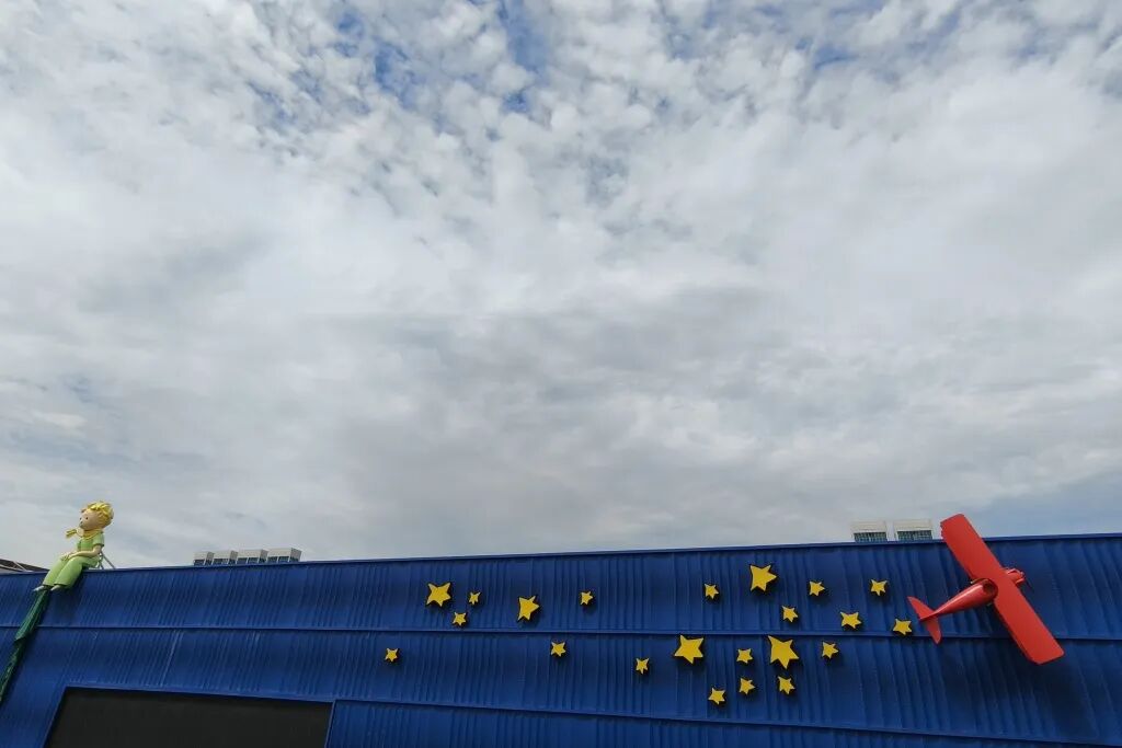 在地铁站北侧,绿衣黄围巾的“小王子”正静静地坐在小王子主题乐园的蓝色屋顶上。乐园内满是法式浪漫元素,从沉浸式剧场到MR拓展闯关,还有VR天文馆和互动投影游戏,大小朋友都能走进一场奇幻的治愈之旅。